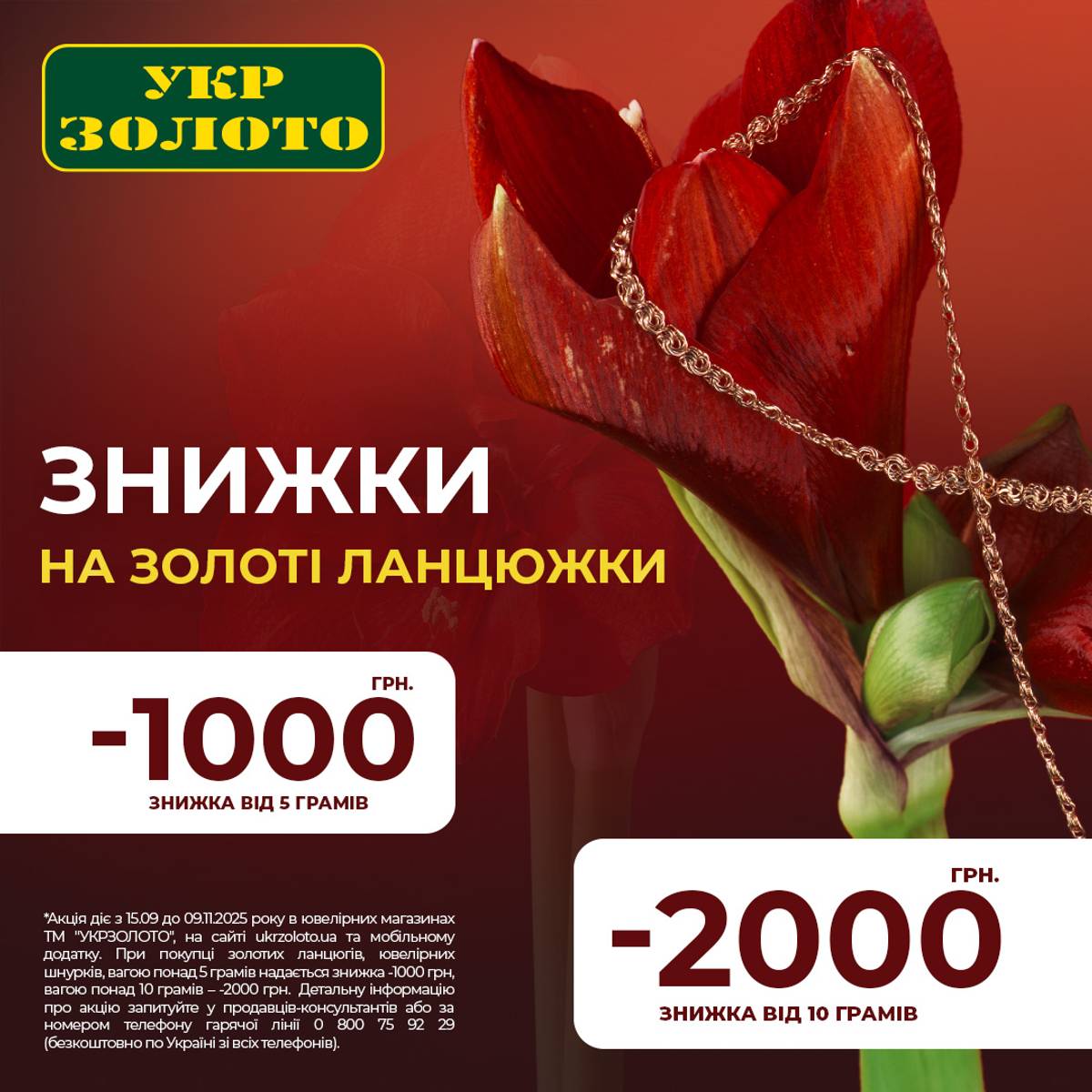 Купуй золотий ланцюжок вагою від 5 грамів і отримуй знижку 1000 гривень.